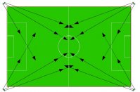 زمين فوتبال تمريني براي زمين هاي فوتبال کلاس I و II، دو روش مرسوم است: 1) استفاده از 6 يا 8 پايه در طرفين زمين و نصب پروژکتورهاي متقارن، 2) نصب 4 پايه در چهار گوشه زمين و استفاده از پروژکتورهاي متقارن. با توجه به اينکه نمونه هايي از استفاده از پروژکتورهاي متقارن در زمين تنيس ارايه شده است، در اين مثال از پروژکتورهاي متقارن استفاده کرده ايم.
